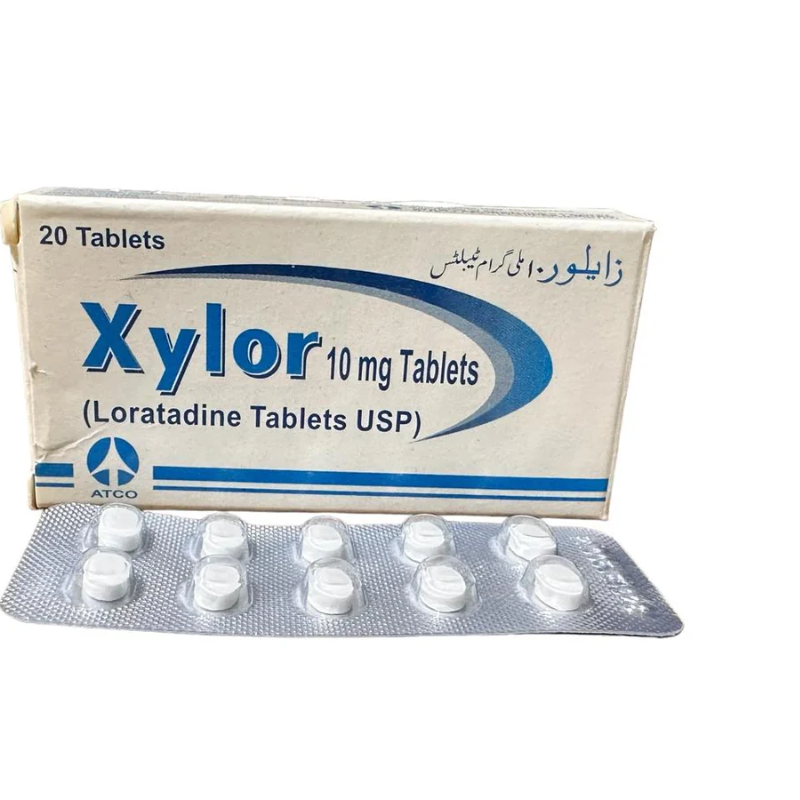 Each Xylor tablet contains Loratadine 10mg as its active ingredient. Loratadine is a non-drowsy antihistamine that blocks histamine receptors in the body, reducing allergic reactions.